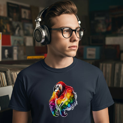 Embrace the wild with this captivating T-shirt featuring an orangutan illustrated in a bold alcohol ink style, illuminated by a stunning rainbow gradient. The expressive face and gentle demeanor of the orangutan are enhanced by the vivid, flowing colors, making this shirt a vibrant tribute to one of nature's most endearing creatures. Perfect for wildlife lovers and those who appreciate art that makes a statement!