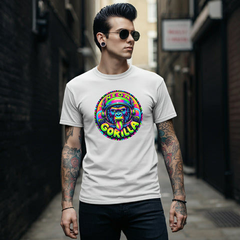 Blast off into bold style with the "Neon Gorilla" T-shirt, featuring a neon gorilla donned in an astronaut helmet, illustrated in an explosive psychedelic style. This unique, streetwear-inspired tee combines cosmic adventure with urban edge, making it a standout addition to any wardrobe. Perfect for those who dream big and dress boldly, ready to make a statement both on the streets and beyond.